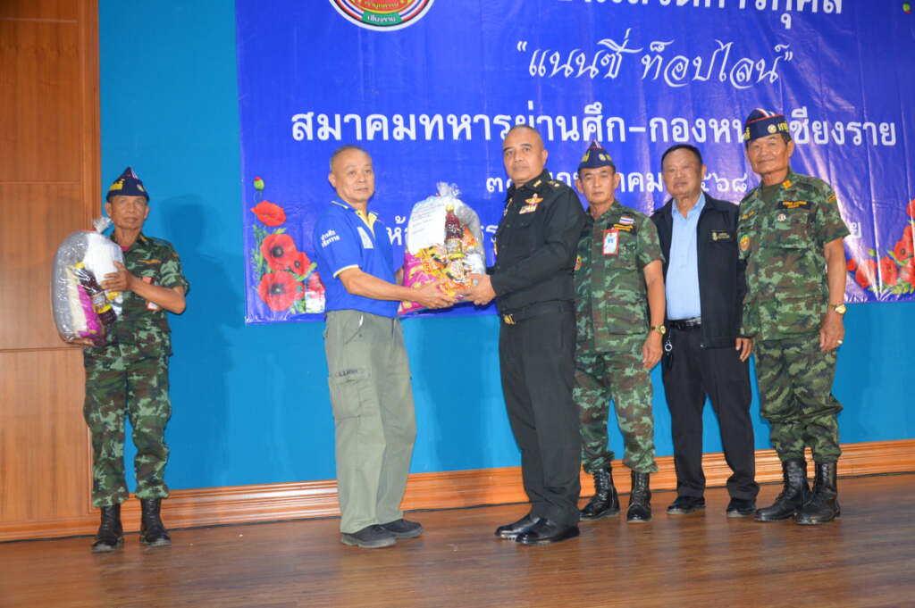 ***การจัดกิจกรรมในครั้งนี้เพื่อนำรายได้เป็นทุนการบริหารจัดการด้วยวัตถุประสงค์ดังกล่าว อีกทั้งเพื่อเตรียมการจัดหาสิ่งของเพื่อช่วยเหลือคอบครัวสมาชิกที่ประสบภัยพิบัติธรรมชาติอีกส่วนหนึ่งด้วย ขอขอบคุณฝ่ายปกครองจังหวัดเชียงราย ขอบคุณ อผศ.ที่ได้เห็นชอบอนุญาตให้จัดกิจกรรมได้ตามระเบียบที่กำหนดไว้ และขอขอบคุณพี่น้องประชาชนที่ได้ให้การสนับสนุนซื้อบัตรชมมินิคอนเสิร์ต “แนนซี่ ท็อฟไลน์” ในครั้งนี้ด้วยจิตคารวะเป็นอย่างสูง จ.ส.ต.บุญส่ง ศรีจุมปา ปฏิบัติหน้าที่นายกสมาคมหารผ่านศึกและทหารกองหนุน เชียงราย กล่าว