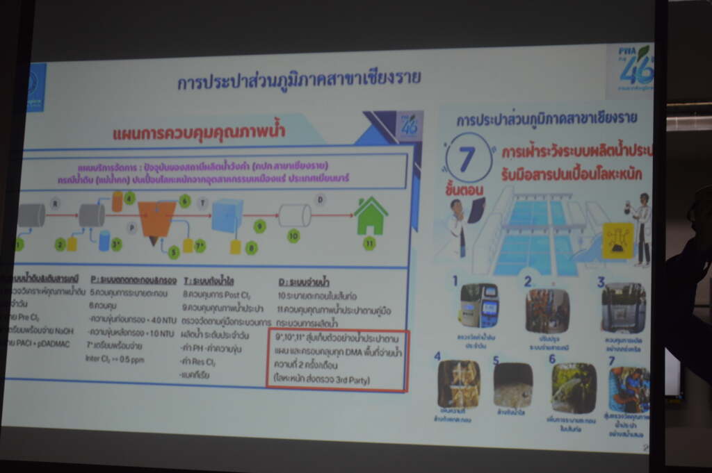 ***นายสุทัศน์ นุชปาน รองผู้ว่าการการประปาส่วนภูมิภาค (ปฏิบัติการ 1) กล่าวว่า สืบเนื่องจากปัญหาคุณภาพน้ำจากแม่น้ำกกซึ่งเป็นแหล่งน้ำดิบที่การประปานำมาผลิตเป็นน้ำประปามีปัญหาการปนเปื้อนสารพิษจากการทำเหมืองแร่จากต้นน้ำในประเทศเมียนมาร์ การประภาส่วนภูมิภาคได้ทำการตรวจสอบคุณภาพของน้ำในแม่น้ำก่อนเข้ากระสวนการการผลิต ซึ่งมีขั้นตอนหลักด้วยกสน ตรวจสอบคุณภาพน้ำดิบ นำมาทำให้ตกตะกอนด้วยการใช้สารเคมีเฉพาะเพื่อดึงสารปนเปื้อนต่างๆให้ตกตะกอน จนได้น้ำใสไม่มีสารเจือปน และเติมคลอรีนเพื่อฆ่าเชื้อโรคก่อนส่งผ่านไปยังผู้บริโภค ทำให้สามารถดื่มได้ ขอยืนยันว่าน้ำประปาของการประปาส่วนภูมิภาค สาขาเชียงราย ปลอดภัยได้มาตรฐาน สามารถดื่มได้