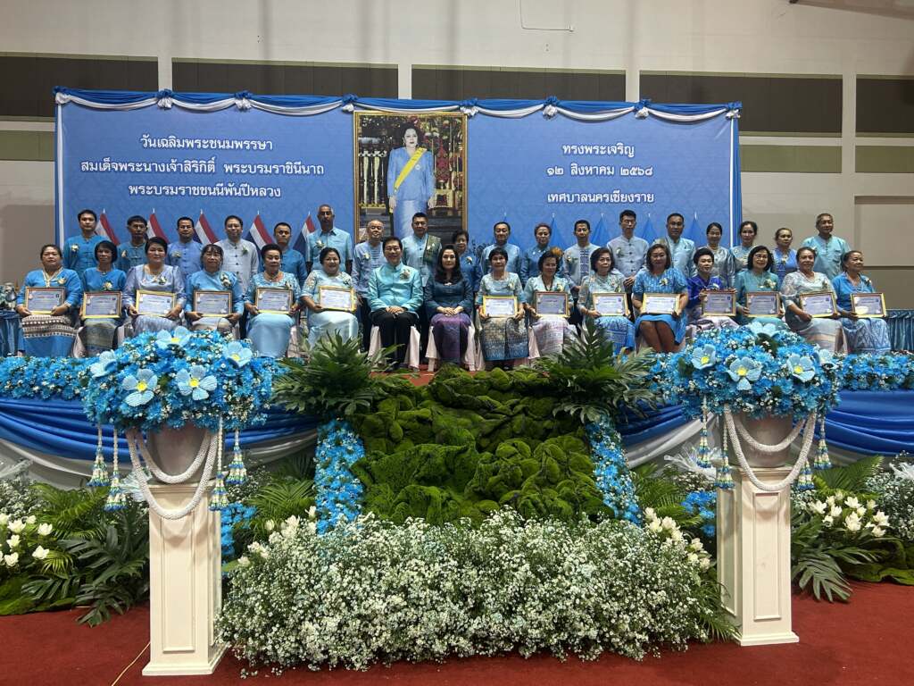 ***นายวันชัย จงสุทธานามณี นายกเทศมนตรีนครเชียงราย ประธานในพิธี พร้อมด้วยนางรัตนา จงสุทธานามณี นายกสมาคมกีฬาแห่งจังหวัดเชียงรายนายโชติศิริ ดารายนต์ นายกสมาคมสื่อมวลชนและนักประชาสัมพันธ์เชียงราย คณะผู้บริหาร ประธานสภาสมาชิกสภาเทศบาล ข้าราชการ และพี่น้องประชาชน ร่วมพิธีถวายราชสดุดีแด่สมเด็จพระนางเจ้าสิริกิติ์ พระบรมราชินีนาถ พระบรมราชชนนีพันปีหลวง และมอบใบประกาศเกียรติคุณ “แม่ดีเด่น” ประจำปี 2568 จำนวน 77 คน จาก 63 ชุมชน และเครือข่ายในเขตเทศบาลนครเชียงราย
