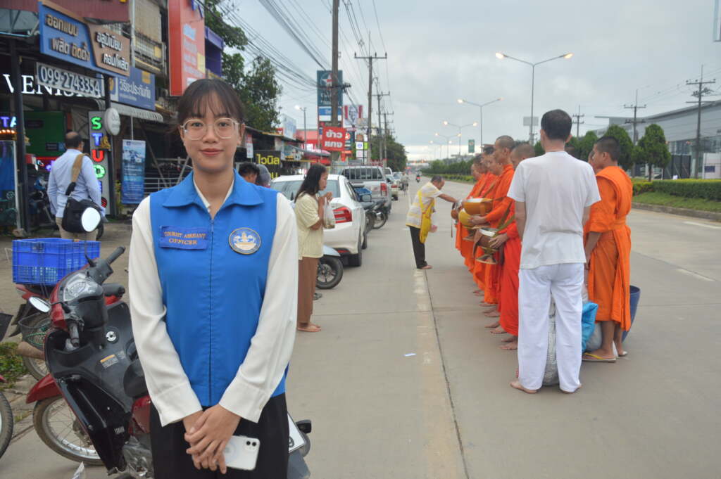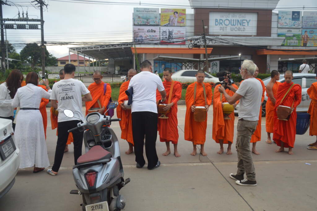 ***ต่อมาในวันจันทร์ที่ 18 สิงหาคม 2568 เวลา 06.30 น. ที่ตลาดสันต้นเปา ชุมชนฝั่งหมิ่น พระภิกษุสงฆ์จำนวน 9 รูป นำโดยพระครูขันติพลาธร เจ้าอาวาสวัดฝั่งหมิ่น นำรับบิณฑบาตจากประชาชนจากตลาดสันต้นเปาผ่านถนนในชุมชนฝั่งหมิ่นผ่านหน้าโรงเรียนเทศบาล 7 เข้าสู่วัดฝั่งหมิ่น เวลา 08.30 น. คณะครูและนักเรียนโรงเรียนเทศบาล 7 ตักบาตรข้าวสารอาหารแห้งที่หน้าอุโบสถวัดฝั่งหมิ่น ทีมสื่อมวลชนฝรั่งเศสได้ติดตามถ่ายทำเทปโทรทัศน์คลอดการบิณฑบาตก่อนจะเดินทางกลับด้วยความประทับใจในประเพณีงานบุญแบบล้านนา และจะได้นำเทปโทรทัศน์ออกอาการทางโทรทัศน์ที่ประเทศฝรั่งเศสและขึ้นสื่อออนไลน์ของทางสถานีออกเผยแพร่ไปทั่งโลก