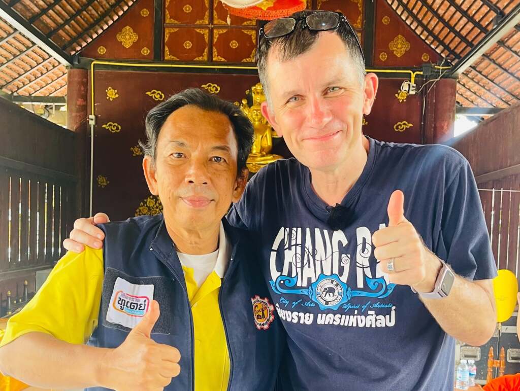 ***เมื่อวันที่ 18 สิงหาคม 2568 ที่วัดฝั่งหมิ่น ต.ริมกก อ.เมือง จ.เชียงราย คณะสื่อมวลชนโทรทัศน์ FRANCE TV ประเทศฝรั่งเศส โดยมีนายซาเวียร์ เดอลาจ (Xavier Delage) อดีตครูสอนภาษาอังกฤษและภาษาฝรั่งเศสที่โรงเรียนเทศบาล 7 เป็นผู้ประสานนายฮาคิม อาเดลคาเลค (Hakim Abdelkhalek) หัวหน้าทีมผู้สื่อข่าว FRANCE TV ในโครงการ “ค้นหาผู้คนที่พูดภาษาฝรั่งเศสทั่วโลก หัวข้อภูมิทัศน์ของนาข้าว ฟาร์มชีวภาพ ฟาร์มกาแฟ สวนชา อาหารไทยล้านนาของภาคเหนือ ประเทศไทย และการท่องเที่ยวเชิงอาหาร (GASTRONOMY Tourism) นอกจากนี้ยังสำรวจและเลือกซื้อผลผลิตสดและอาหารพื้นเมืองที่ตลาดท้องถิ่น ที่ตลาดสดบ้านดู่ อ.เมืองเชียงราย เยี่ยมชมวัดไทยที่วัดฝั่งหมิ่น ชมการเตรียมอาหารและการถวายภัตตาหารแด่พระภิกษุ ในรายการ MONK LIFE มหัศจรรย์อาหารแห่งประเทศไทย ทางช่อง MONDE FRANCE-TV อำนวยการผลิตโดย ซาเวียร์ เดอลาจ ทีวี โดยเมตตาพระครูขันติพลาธร รองเจ้าคณะจังงหวัดเชียงราย เจ้าอาวาสวัดฝั่งหมิ่น นายสมฤทธิ์ สันธิ ไวยาวัจกรวัดฝั่งหมิ่น และศรัทธาชาวบ้านชุมชนฝั่งหมิ่น ให้การต้อนรับและนำชมประเพณนทางพุทธศาสนาล้านนา