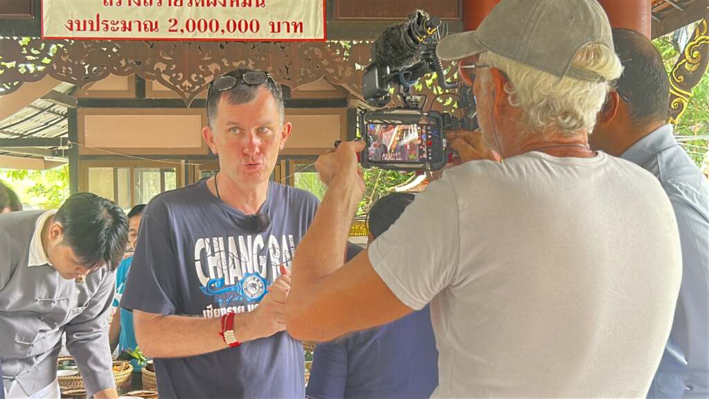 สื่อทีวีฝรั่งเศสยกทีมถ่ายทำประเพณีบุญล้านนาวัดฝั่งหมิ่น