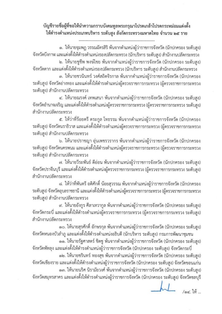 ***เมื่อวันที่ 19 ส.ค. ที่ประชุมคณะรัฐมนตรี (ครม.) มีมติเห็นชอบตามที่ กระทรวงมหาดไทย (มท.) เสนอแต่งตั้งโยกย้ายข้าราชการตำแหน่งบริหารระดับสูงให้พิจารณารวม 25 ตำแหน่ง ประกอบด้วย