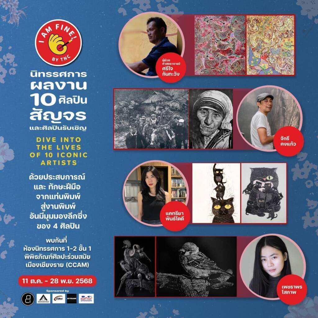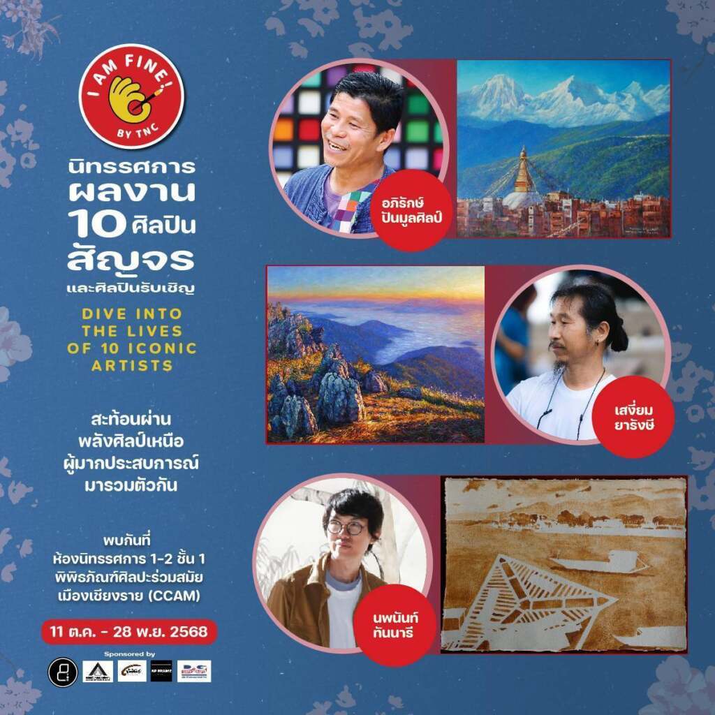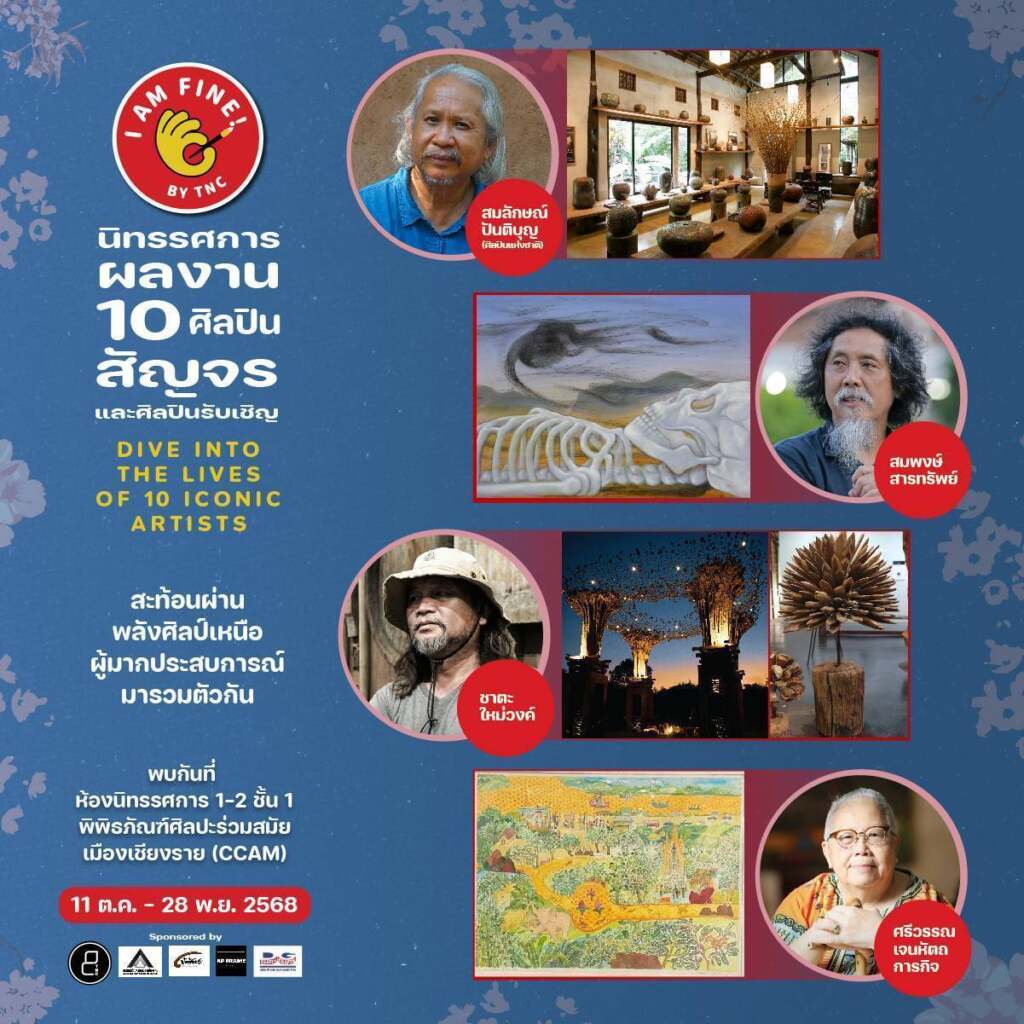 ***กลุ่มTNC ประกาศการกลับมาอย่างยิ่งใหญ่ของนิทรรศการสัญจร “I AM FINE” ครั้งที่ 2 ซึ่งจะจัดขึ้นอย่างเต็มรูปแบบและยิ่งใหญ่กว่าเดิม ด้วยความร่วมมือระหว่างพิพิธภัณฑ์ร่วมสมัยเชียงราย (CCAM) โดยสมาคมขัวศิลปะ และ กลุ่ม TNC.ART กำหนดจัดขึ้นระหว่างวันที่ 11 ตุลาคม ถึง 28 พฤศจิกายน 2568 นี้ ที่จังหวัดเชียงราย ในการนี้ ตัวแทนกลุ่ม TNC เปิดเผยว่า นิทรรศการครั้งนี้จัดขึ้นภายใต้แนวคิด “DIVE INTO THE LIVES OF 10 ICONIC ARTISTS” ซึ่งนำเสนอผลงานเจาะลึกถึงชีวิตและตัวตนของ 10 ศิลปินชั้นแนวหน้าของวงการศิลปะไทย พร้อมด้วยผลงานจากศิลปินรับเชิญผู้ทรงคุณวุฒิและศิลปินคลื่นลูกใหม่ที่น่าจับตามองอีกมากมายรวมกว่า 30ชีวิต ถือเป็นการรวมตัวครั้งสำคัญของศิลปินจากหลากหลายรุ่นและหลายแขนง