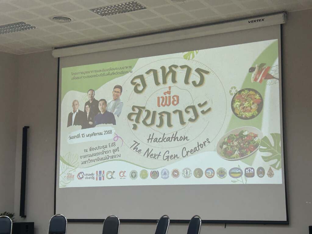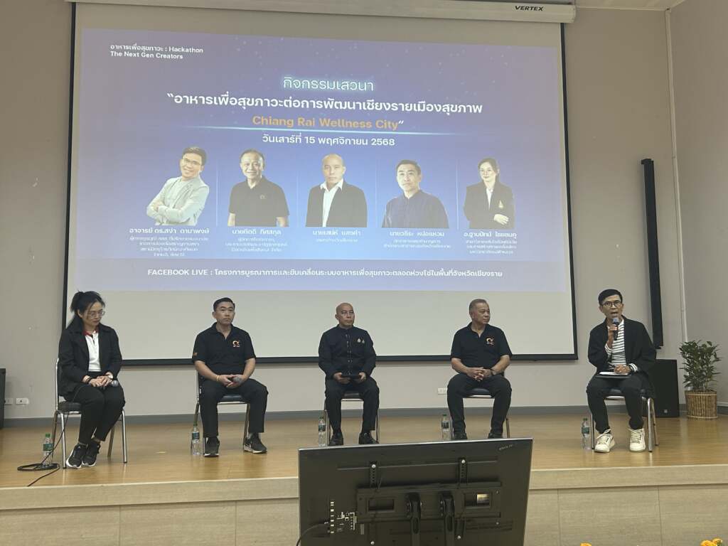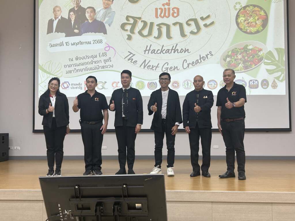 ***เมื่อเวลา 09.30 น.วันศุกร์ที่ 15 พฤศจิกายน 2568 ห้องประชุมประดู่แดง 2 (812) อาคารพล.ต.อ.เภา สารสิน (E4) มหาวิทยาลัยแม่ฟ้าหลวง ต.ท่าสุด อ.เมืองเชียงรายดร.ณัฐวุฒิ ยอดสุวรรณ รองอธิการบดีมหาวิทยาลัยแม่ฟ้าหลวง เป็นประธานเปิดงานกิจกรรม Hackathon “อาหารเพื่อสุขภาวะ : The Next Gen Creators” ภายใต้ โครงการบูรณาการและขับเคลื่อนระบบอาหารเพื่อสุขภาวะตลอดห่วงโซ่ในพื้นที่จังหวัดเชียงราย โดยได้รับการสนับสนุนหลักจากสำนักงานกองทุนสนับสนุมการสร้างเสริมสุขภาพ (สสส.) ดำเนินงานโดย บริษัทประชาสามัคคีเชียงราย (วิสาหกิจเพื่อสังคม) จำกัด เพื่อพัฒนาระบบอาหารเพื่อสุขภาวะอย่างยั่งยืน ขับเคลื่อนจังหวัดเชียงรายสู่การเป็น “เมืองแห่งสุขภาพและอาหารปลอดภัย” (Chiang Rai Wellness City) ประกอบด้วยกิจกรรมเสวนาในหัวข้อ “อาหารเพื่อสุภาวะต่อการพัฒนาเชียงรายเมืองสุขภาพ Chiang Rai Wellness City” โดยมีผู้ร่วมเสวนาได้แก่ ดร.สง่า ดามาพงษ์ ผู้ทรงคุณวุฒิ สสส. ที่ปรึกษากรมอนามัย นายกิตติ ทิศศสกุล ผู้จัดการโครงการบูรณาการและขับเคลื่อนระบบอาหารเพื่อสุขภาวะตลอดห่วงโซ่และประธานบริษัทประชารัฐรักสามัคคีเชียงราย (วิสาหกิจเพื่อสังคม) จำกัด นายเสน่ห์ แสงคำ เกษตรจังหวัดเชียงราย นายวชิระ หนอแหวน นักสาธารณสุขชำนาญการ สำนักงานสาธารณสุขจังหวัดเชียงราย อ.ฐานปัทม์ ไชยชมภู ตำแหน่ง สาชาชาวิชาเทคโลยีมัลติมีเดียและการสร้างภาพเคลื่อนไหว มหาวิทยาลัยแม่ฟ้าหลวง และการมอบรางวัลการประกวดลงานผลิตสื่อเพื่อรณรงค์ให้คนเชียงรายตระหนักต่อการผลิตและบริโภคอาหารปลอดภัยเพื่อสุขภาวะที่ดี (Hackathon) จำนวน 6 รางวัล ได้แก่ รางวัลชนะเลิศรับโล่รางวัลและเงินสด 5,000 บาท รองชนะเลิศอันดับ 1 รับโล่รางวัลและเงินสด 3,000 บาท รองชนะเลิศอันดับ 2 รับโล่รางวัลและเงินสด 2,000 บาท รางวัล Popular Vote รับโล่รางวัลและเงินสด 5,000 บาท รางวัลชมเชย (2 รางวัล) รับโล่รางวัลและเงินสดรางวัลละ 1,000 บาท