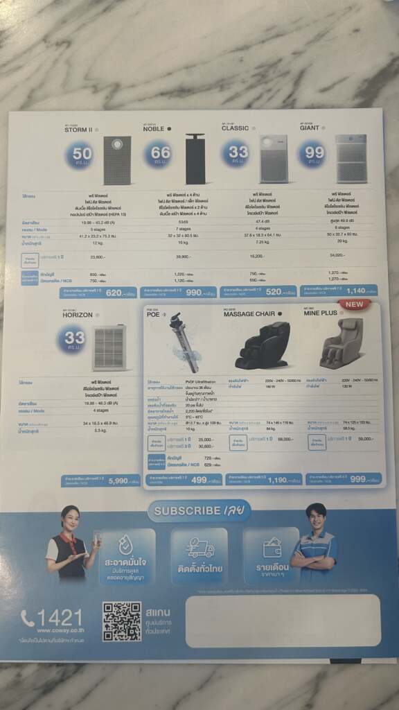 ***โดยผลิตภัณฑ์เวย์ทุกประเภทสามารถเป็นเจ้าของได้ด้วยระบบการชำระแบบ SUBSCRIPTION บริการทความสะอาดเช็คสภาพเครื่องทุก 2 เดือน เปลี่ยนไส้กรองทุก 4 เดือน ตลอดอายุสัญญาไม่มีค่าใช้จ่าย ผู้สนใจสมัครเป็นผู้แทนจำหน่ายสามารถสมัครได้ฟรีพร้อมให้การอบรมแนะนำ ติดต่อสอบถามได้ที่ศูนย์โคเวย์ทุกสาขา