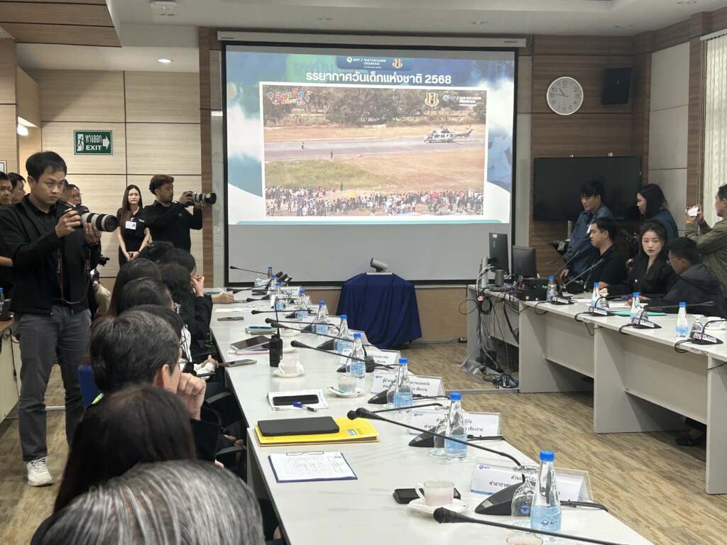 ***เมื่อเวลา 10.30 น. วันที่ 24 ธันวาคม 2568 ที่ห้องประชุมตอบแทนคุณแผ่นดิน ท่าอากาศยานแม่ฟ้าหลวง เชียงราย อ.เมืองเชียงราย นาวาอากาศเอก สกรรจ์ อุดล ผู้เชี่ยวชาญ 9 รักษาการผู้อำนวยการท่าอากาศยานแม่ฟ้าหลวง เชียงราย ร่วมกับ นาวาอากาศเอก ปราโมทย์ กุยแก้ว ผู้บังคับการฝูงบิน 416 (เชียงราย) จัดงานแถลงข่าวการจัดงานวันเด็กแห่งชาติ ประจำปี 2569 โดยการจัดงานวันเด็กแห่งชาติประจำปี 2569 นี้ ถือเป็นการบูรณาการดำเนินงานร่วมกันระหว่างหน่วยงาน ด้านกิจกรรมการบิน หน่วยงานภาครัฐ ภาคเอกชน ผู้ประกอบการและสมาคมต่าง ๆ ภายในจังหวัดเชียงรายต่อเนื่องเป็นปีที่ 2 ซึ่งมี หน่วยงานบ้านพักเด็กและครอบครัวจังหวัดเชียงราย ศึกษาธิการจังหวัดเชียงราย ศุลกากรแม่สาย สำนักงานทรัพยากรธรรมชาติและ สิ่งแวดล้อมจังหวัดเชียงราย มูลนิธิสยามเชียงราย ชมรม Biz Club จังหวัดเชียงราย สถานีตำรวจภูธรเมืองเชียงราย สมาคมสื่อมวลชนและนักประชาสัมพันธ์เชียงราย พร้อมด้วยคณะผู้บริหาร พนักงานท่าอากาศยานแม่ฟ้าหลวง เชียงราย และหน่วยงานที่เกี่ยวข้องเข้าร่วมการแถลงข่าว มีวัตถุประสงค์เพื่อส่งเสริมและสนับสนุนเด็กและเยาวชนให้มีสุขภาพที่ดีทั้งร่างกายและจิตใจ ตระหนักถึงความสำคัญของตนเองเกี่ยวกับสิทธิ หน้าที่ ความรับผิดชอบ ระเบียบวินัยที่มีต่อตนเองและสังคม มีความยึดมั่นในสถาบันชาติ ศาสนา พระมหากษัตริย์ ซึ่งวันเด็กตรงกับวันเสาร์ที่ 10 มกราคม 2569 ซึ่งนายอนุทิน ชาญวีรกูล นายกรัฐมนตรี ได้ให้คำขวัญวันเด็กปี 2569 ว่า “รักชาติไทย ใส่ใจโลก” ดังนั้น การจัดงานวันเด็กแห่งชาติ ประจำปี 2569 ณ ฝูงบิน 416 (เชียงราย) จึงถือเป็นการกระตุ้นให้เด็กและเยาวชนเรียนรู้ รับรู้ ตระหนักรู้ถึงสิทธิ หน้าที่ ความรับผิดชอบ ระเบียบวินัย และยึดมั่นใน สถาบันชาติ ศาสนา พระมหากษัตริย์ รวมทั้งการที่ทุกภาคส่วนเข้ามามีส่วนร่วมในการเล็งเห็นถึงความสำคัญต่อการสะท้อนแนวคิดของ การพัฒนาเด็กและเยาวชนอย่างรอบด้านและเต็มศักยภาพ ให้มีจิตสำนึกในความเป็นไทย เคารพกติกา อยู่ร่วมกับผู้อื่นได้อย่างสร้างสรรค์ อันจะนำไปสู่การเป็นพลเมืองที่ดีมีคุณภาพในอนาคต