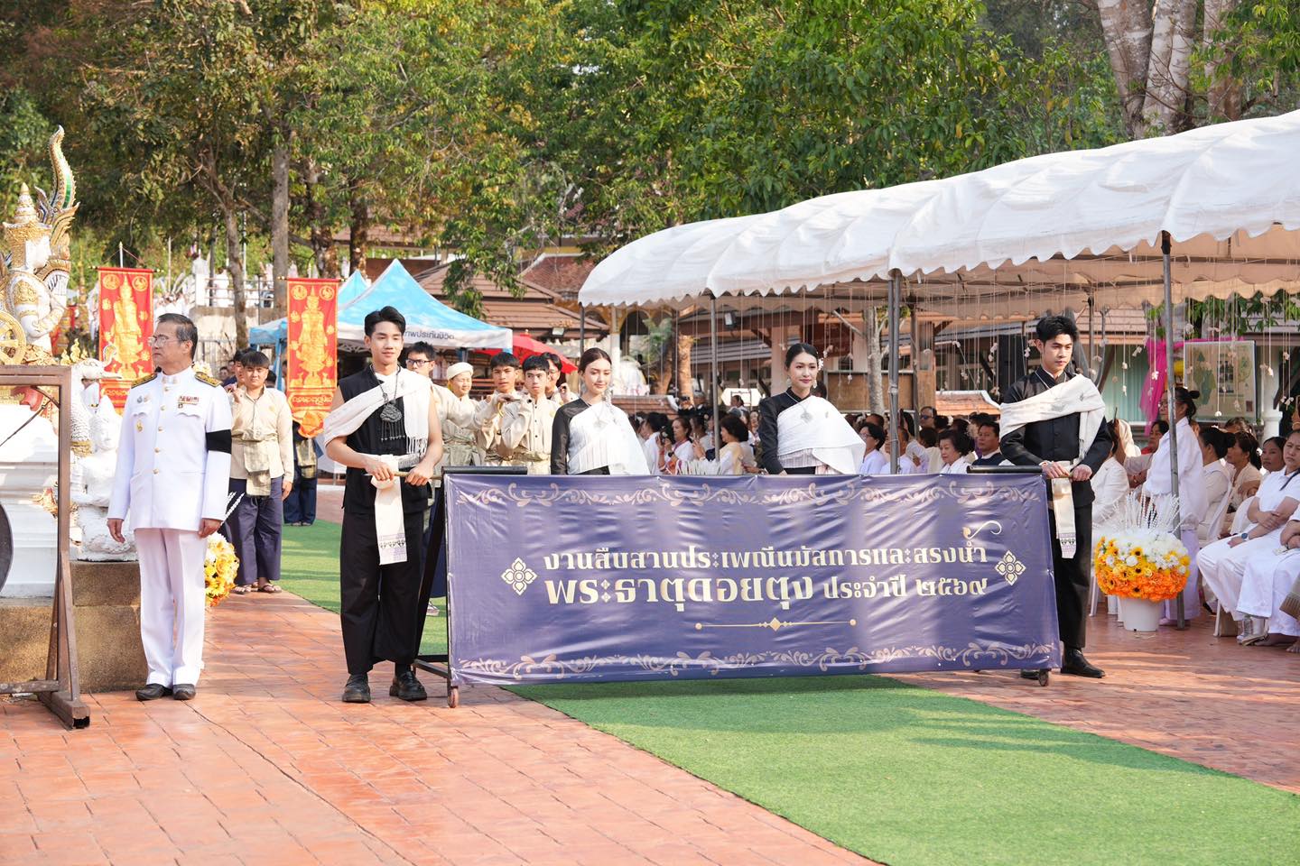 ***เมื่อวันอังคารที่ 3 มีนาคม 2569 เทศบาลนครเชียงรายโดย นายวันชัย จงสุทธานามณี นายกเทศมนตรีนครเชียงราย มอบหมายให้ ดร.จตุรัฐชัย จินตนาสิทธิคุณ รองปลัดเทศบาลนครเชียงราย รก.ปลัดเทศบาลนครเชียงราย พร้อมด้วยนางนัยนา อินทจักร์ ผู้อำนวยการกองฯ เจ้าหน้าที่ ข้าราชการ เจ้าหน้าที่ เทศบาลนครเชียงราย เข้าร่วมงานสืบสานประเพณีนมัสการและสรงน้ำพระธาตุดอยตุง ประจำปี 2569 ภายใต้ชื่องาน “2008 ปีสืบมา หกเป็งล่องฟ้า ไหว้สาพระธาตุดอยตุง” เพื่อร่วมสืบสานขนบธรรมเนียมประเพณีอันดีงามของชาวล้านนา แสดงออกถึงความเลื่อมใสศรัทธาต่อองค์พระธาตุดอยตุง ซึ่งเป็นปูชนียสถานสำคัญคู่บ้านคู่เมืองของจังหวัดเชียงราย ตลอดจนส่งเสริมการท่องเที่ยวเชิงวัฒนธรรมของพื้นที่ให้คงอยู่สืบไปโดยมีพระราชวชิรคณี เจ้าคณะจังหวัดเชียงราย พระพุทธิวงศ์วิวัฒน์ ที่ปรึกษาเจ้าคณะภาค 6, เจ้าอาวาสวัดพระสิงห์ (พระอารามหลวง) และ รักษาการเจ้าอาวาสวัดพระธาตุดอยตุง อำเภอแม่สาย คณะสงฆ์จังหวัดเชียงราย พร้อมด้วย นายชูชีพ พงษ์ไชย ผู้ว่าราชการจังหวัดเชียงราย เป็นประธานในพิธี พร้อมด้วยหัวหน้าส่วนราชการ คณะผู้บริหารองค์กรปกครองส่วนท้องถิ่น กำนัน ผู้ใหญ่บ้าน และประชาชนเข้าร่วมอย่างพร้อมเพรียง ณ วัดพระธาตุดอยตุง อำเภอแม่สาย จังหวัดเชียงราย